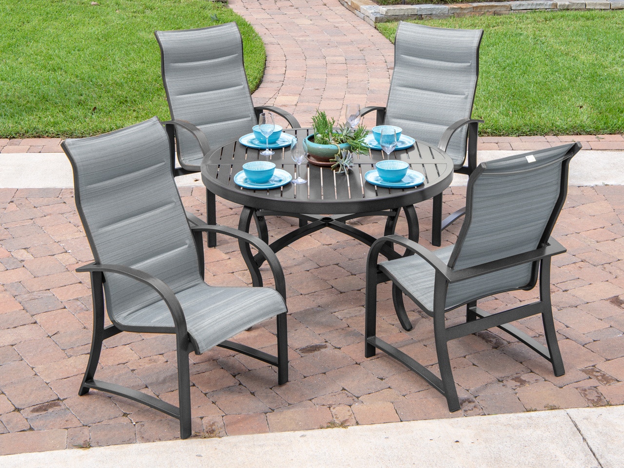 Outdoor Patio Ibiza Grey Aluminum 5 Pc Padded Sling Dining Setwit