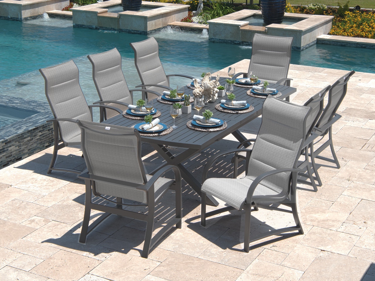 Outdoor Patio Ibiza Gray Aluminum And Grey Padded Sling 9 Pc