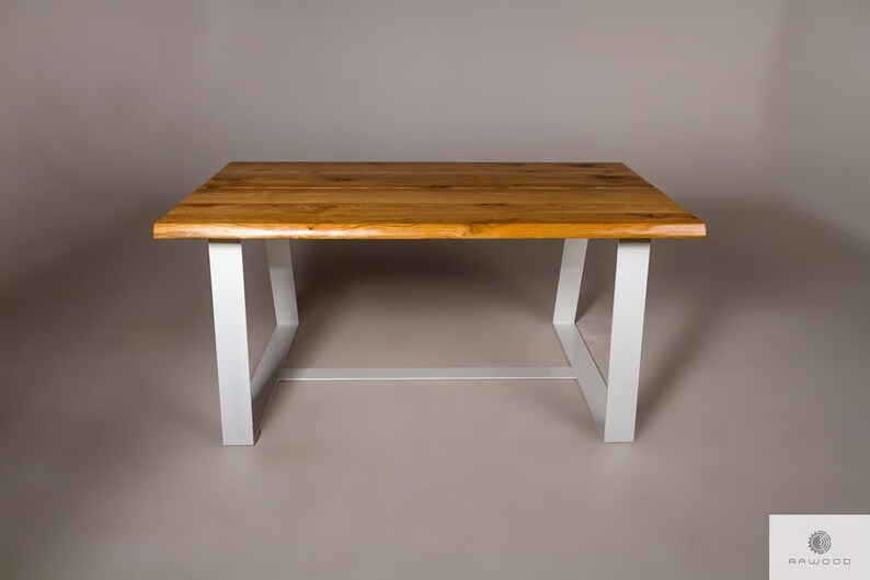 Solid Oak Dining Table Wood Table Oak Table Top White Steel Etsy