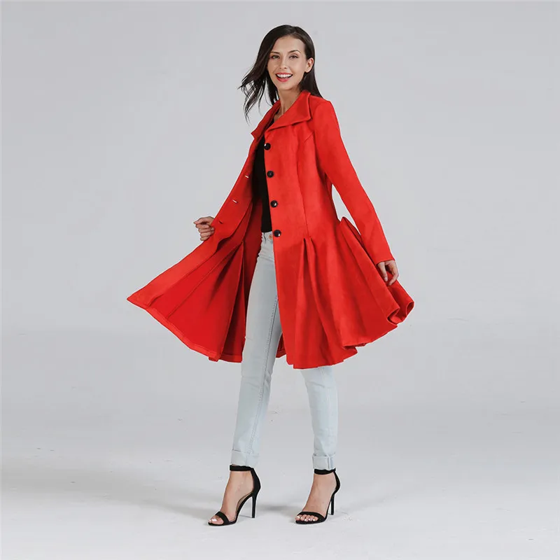 Winter Thick Red Coat For Women Single Breasted Large Swing Coat