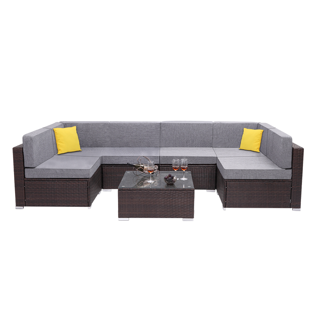 Amazon Com Peach Tree 7 Pcs Outdoor Patio Pe Rattan Wicker Sofa