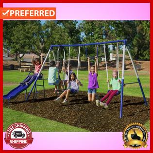 Kids Playground Metal Swingset Outdoor Play Slide Backyard Playset
