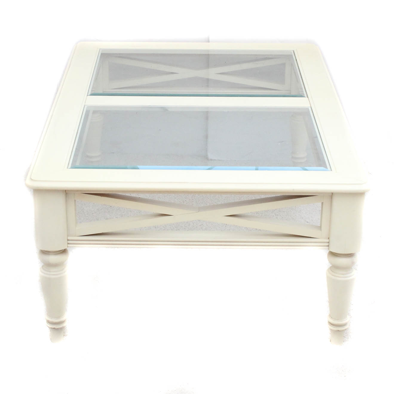 Glass Top Painted Wood Coffee Table Ebth