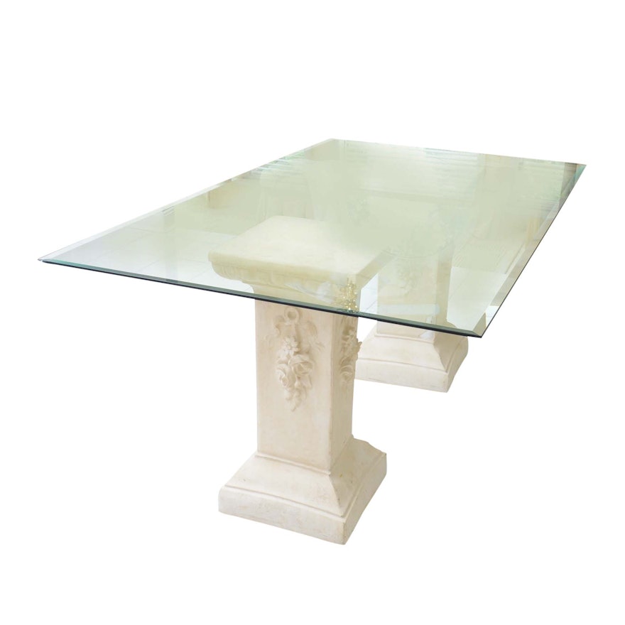 Beveled Glass Top Dining Table On Two Plaster Pillars Ebth