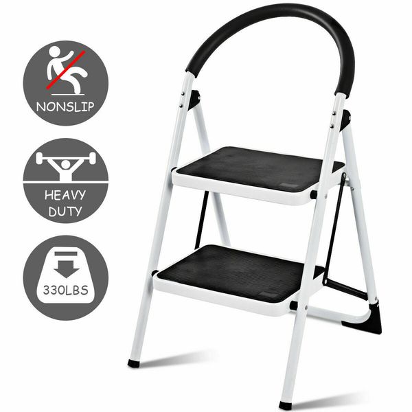 2 Step Ladder Folding Stool Portable Heavy Duty 330 Lbs Capacity