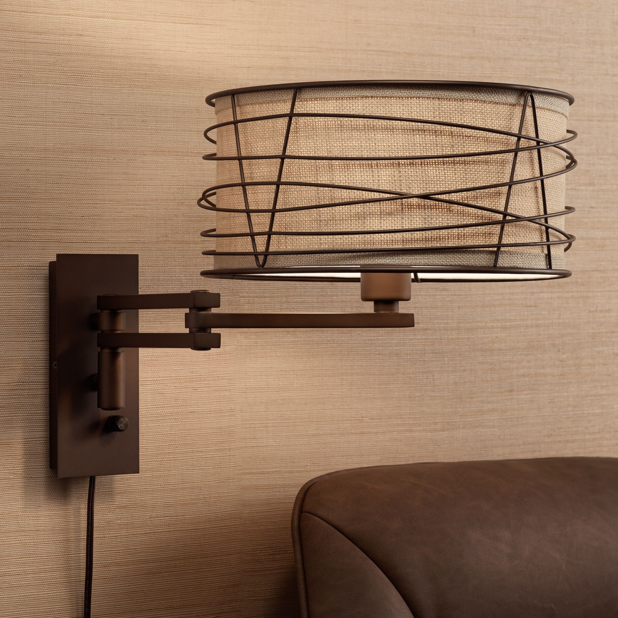 Swing Arm Wall Lamp Plug In Cord Industrial Wall Sconce Bronze