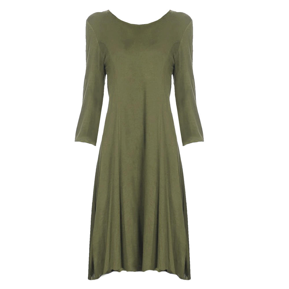 Jersey Knit Long Sleeve Flared Swing Dress Luxury Divas