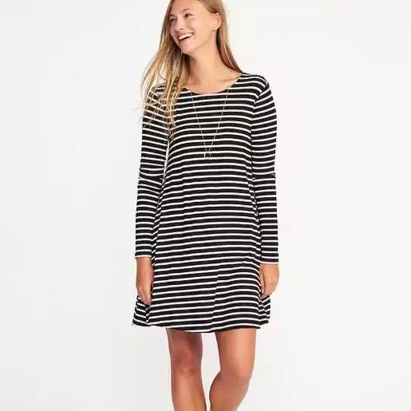 Old Navy Dresses Jersey Knit Swing Dress Blackwhitesmall Poshmark