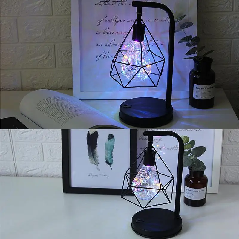 Led Vintage Night Light Retro Industrial Geometric Lamp Iron Cage