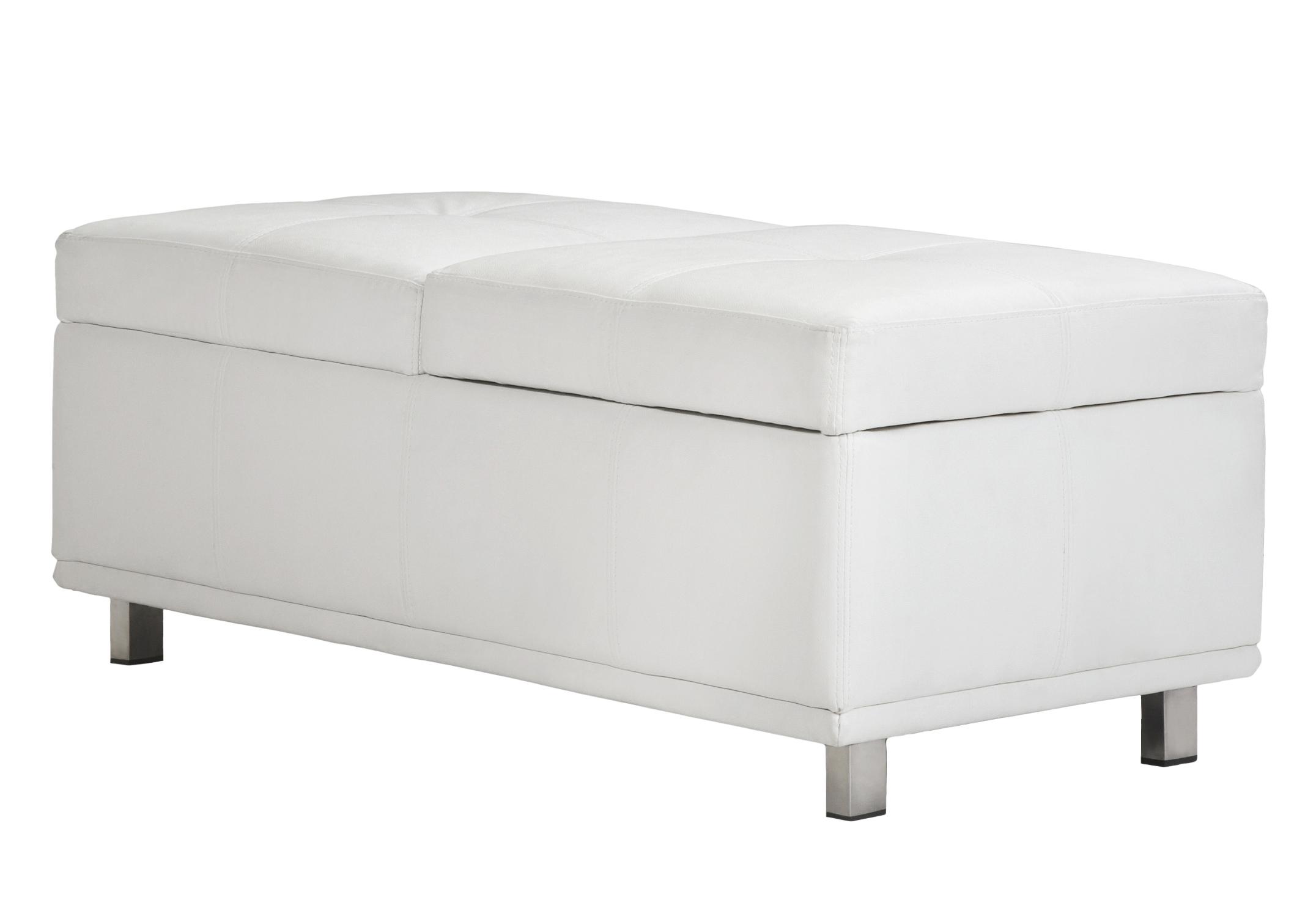 Contemporary Living Space W Ivory Leather Storage Ottoman