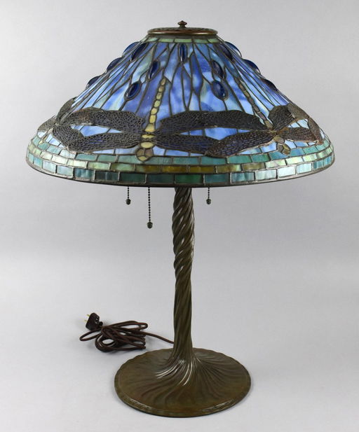 Large Tiffany Style Table Lamp Big Blue Dragonfly Catawiki