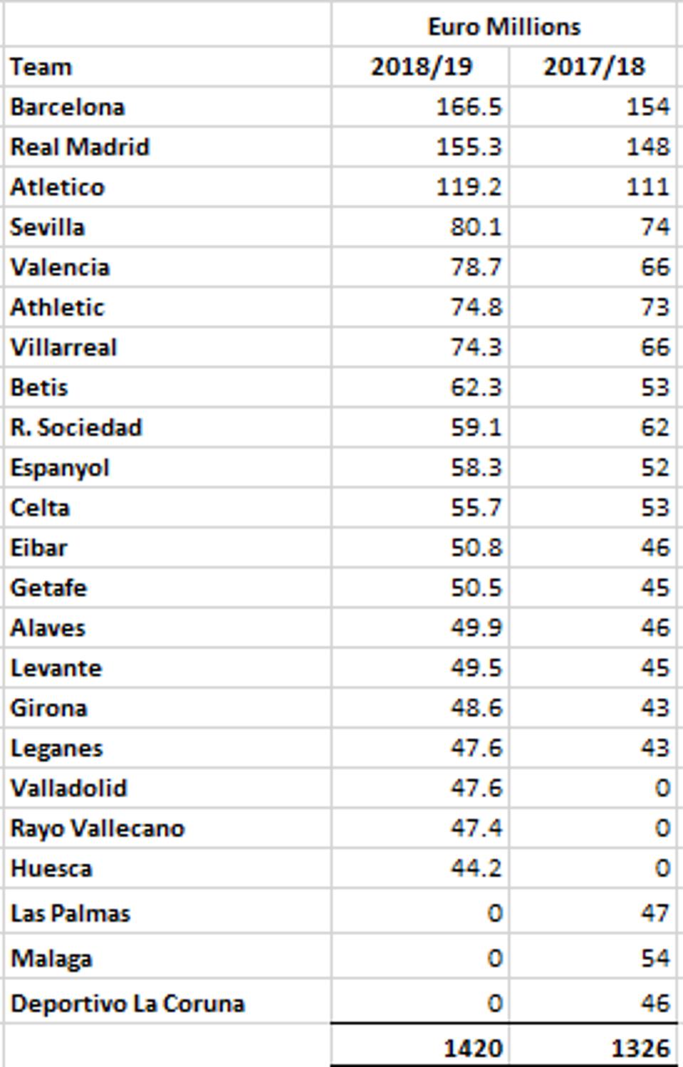 La Liga Tv Rights Revenue Received By Football Teams In Spain