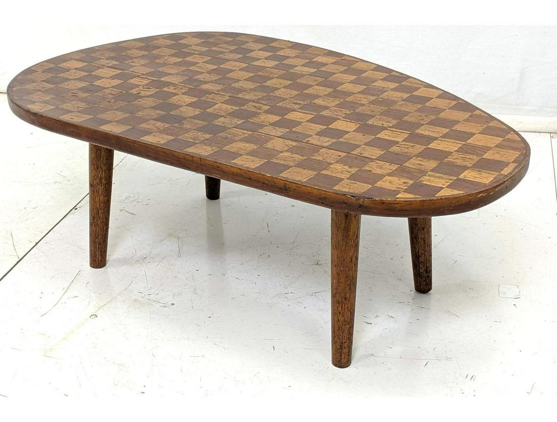 Kidney Shaped Checkered Plywood Coffee Table Dowel Leg Oct 29