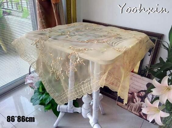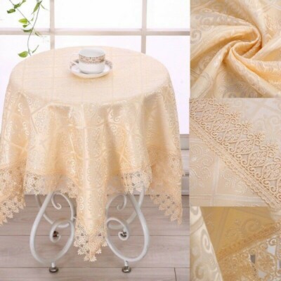 Luxury Champagne Square Tablecloth Embroidery Lace Kitchen Coffee