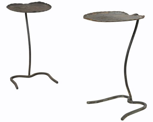Lot Art Vintage Lily Pad Motif Metal Side Tables