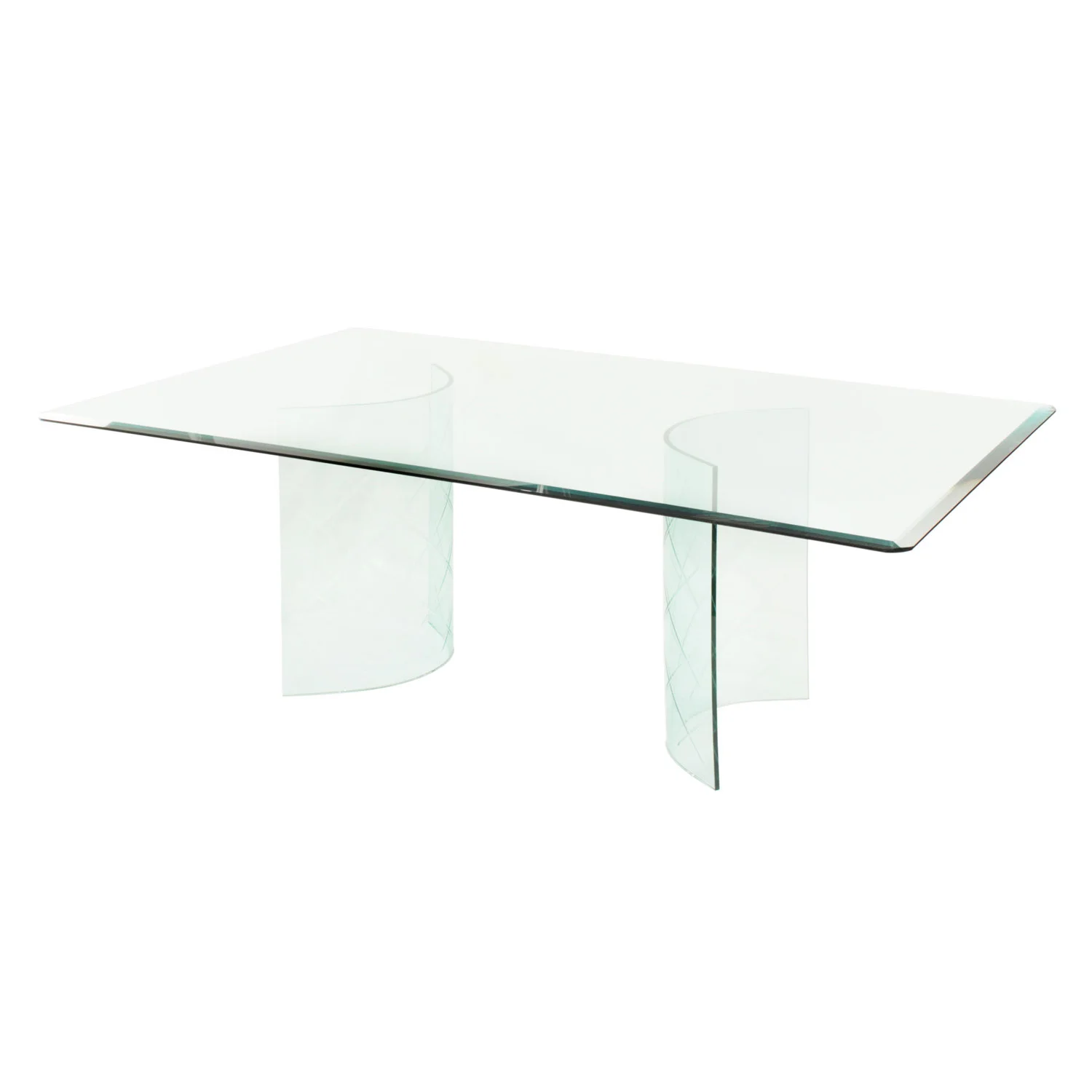 Glass Dining Table With Curved Etches Bases 1950s Lobel Modern Nyc