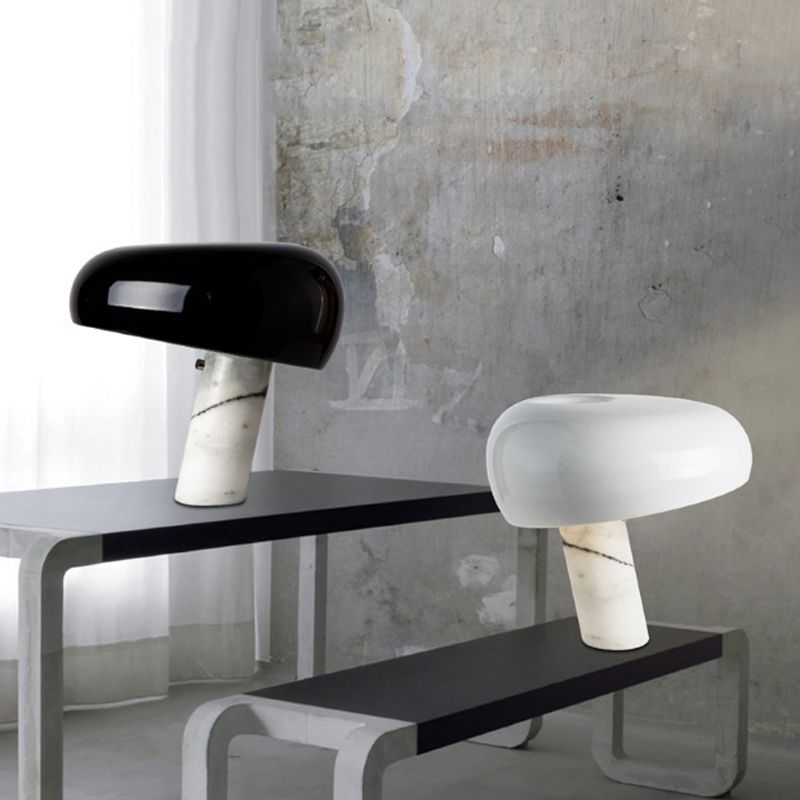 Simple Italian Marble Table Lamp Mushroom White Black Hat Table