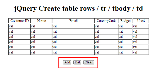 Dynamic Html Table Rows And Columns Creation Using Jquery 3 3 1