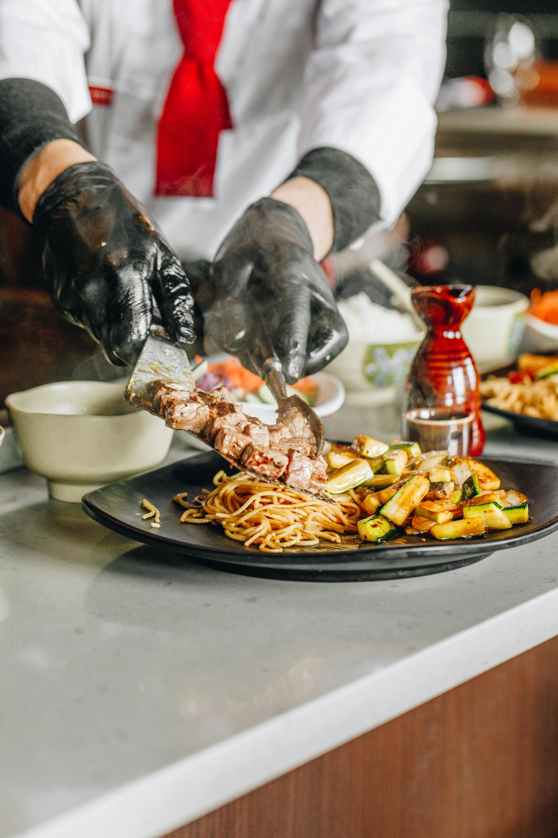 Your Order Japanese Cook Serves A Dish Of Fried Vegetables To